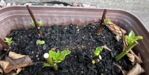 これらの挿し木は、実家のガクアジサイから切り取ってきたもの。