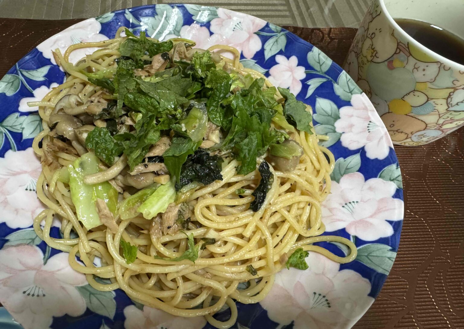 ※写真はいつかの昼食 庭の紫蘇たっぷりパスタ