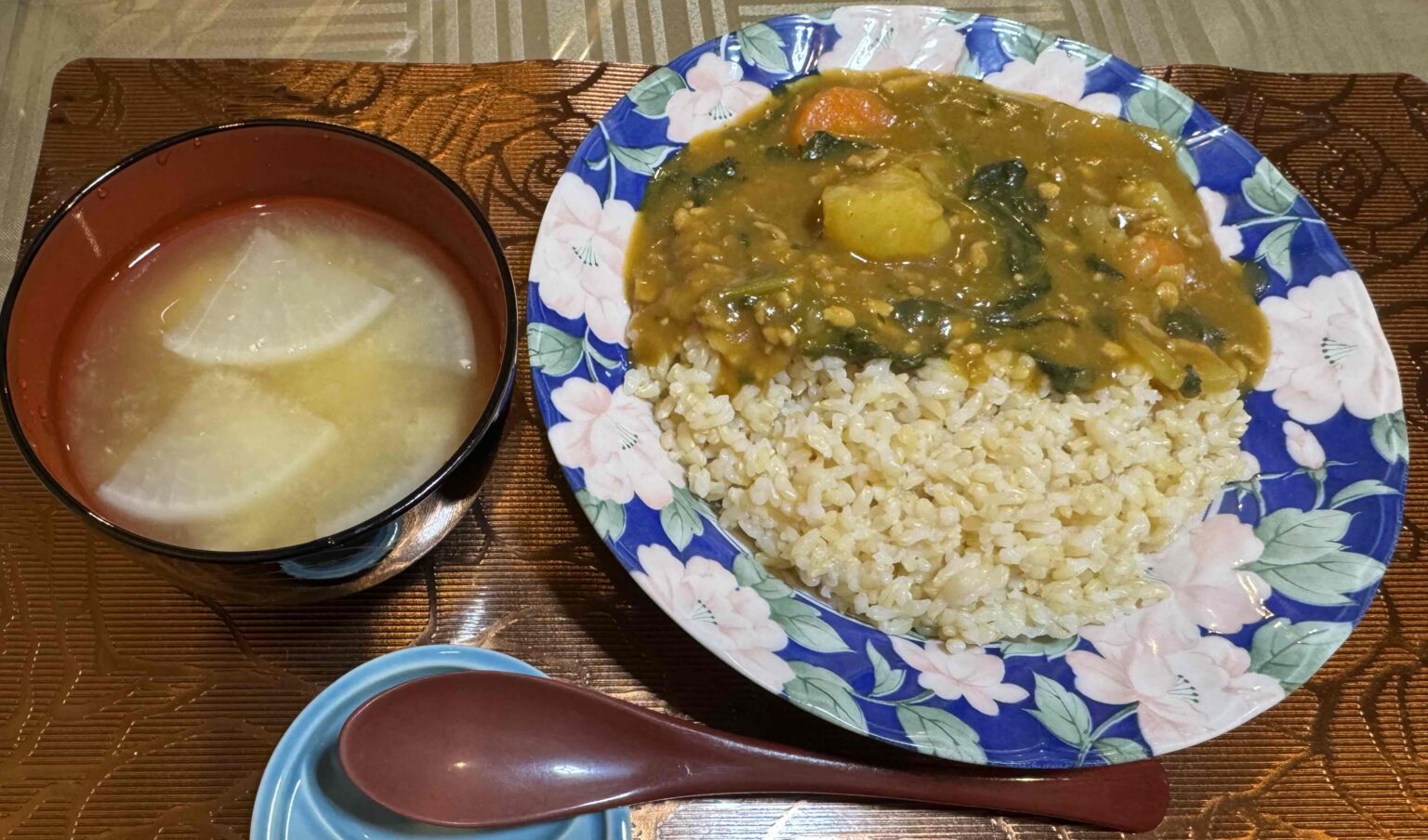 ※写真は昨夜のごはん 普通のカレー(夫君はかたまりの肉がダメなので挽肉)、大根の味噌汁(夫君が好きな具)