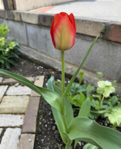 昨年球根の掘り返しをさぼって、そのままになっていたのに、こんな風に咲いたチューリップ♡