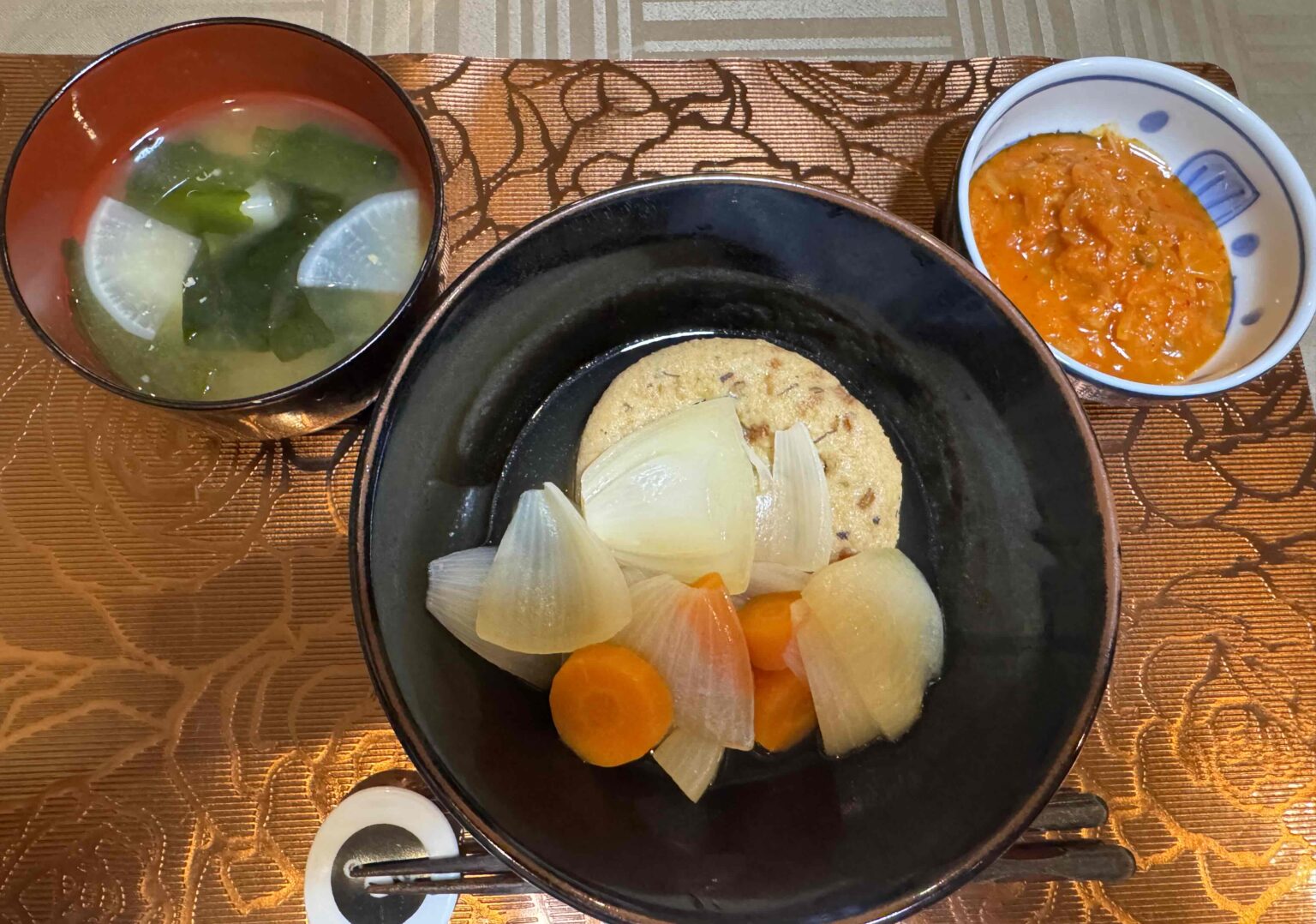 煮物、みそ汁、キムチ(妹の韓国土産)