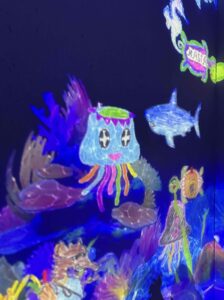 私が色を塗ったクラゲちゃんがプカプカと泳いだときは、すっごく楽しかった。因みに夫君は亀に色付けしましたよ。